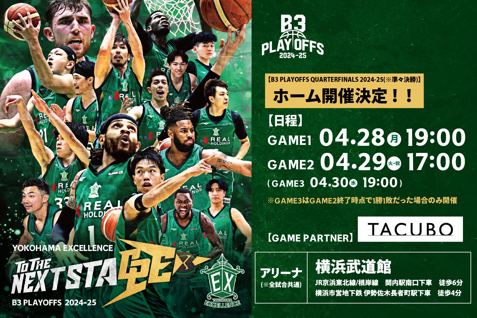 ※横浜エクセレンスが「B3 PLAYOFFS SEMIFINALS 2024-25(※準決勝)」で2勝し、なおかつ対戦クラブよりも「B3リーグ レギュラーシーズン 2024-25」で上位となる場合に「B3 PLAYOFFS FINALS 2024-25(※決勝)」ホーム開催