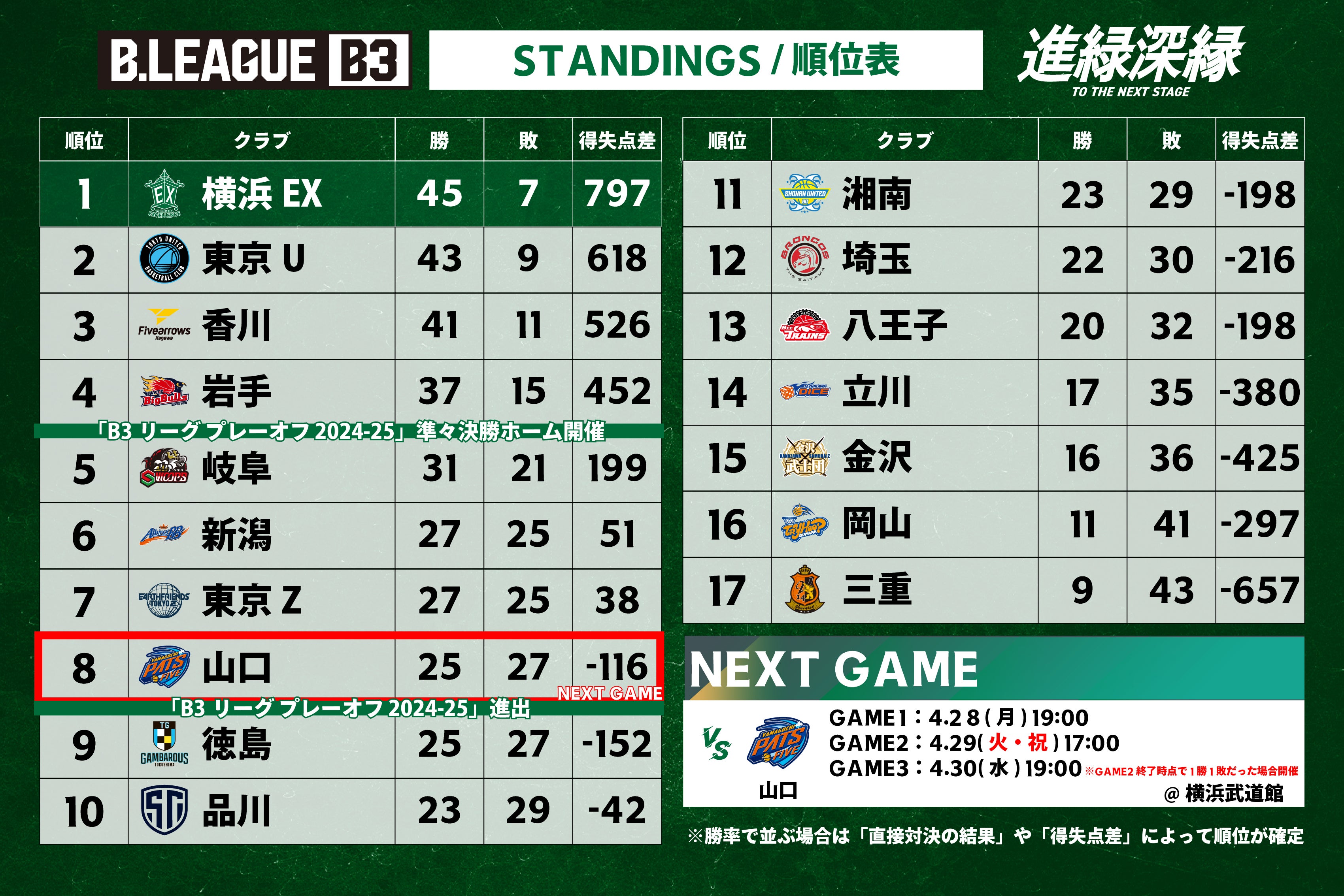なお、「B3リーグ プレーオフ 2024-25」詳細につきましてはこちらよりご確認いただけます。