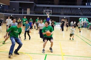 バスケットボール体験会では「#2 小島睦希」、「#11 木下大南帆」、「#13 大橋大空」、「#33 杉山裕介」、「#55 戸笈悠稀」の5名が講師として参加。年齢問わず、バスケットボールに触れ楽しんでいただきました!最後には選手vs参加者のミニゲームを実施して大盛り上がり。