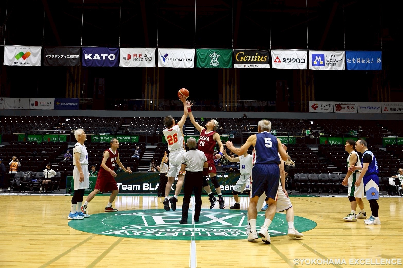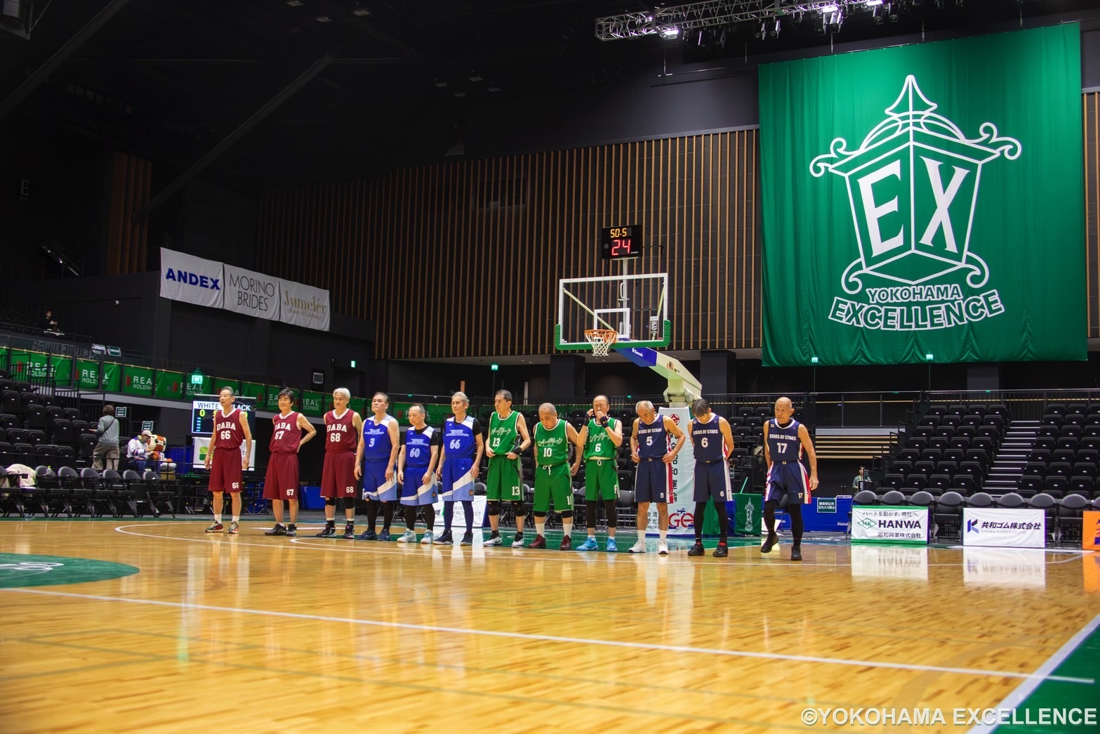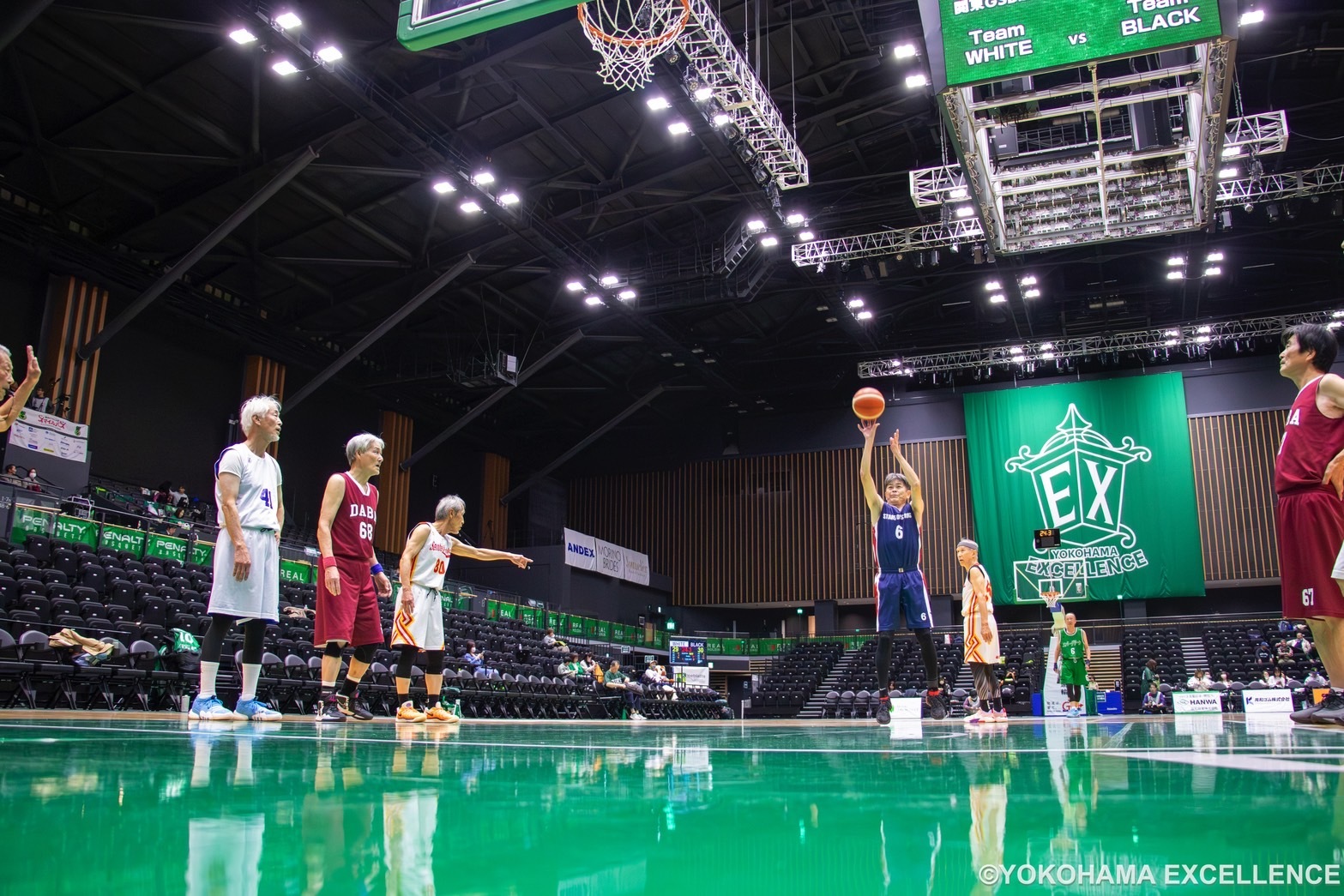 この度、【EX Community Project】の一環として2025年11月29日(土)に横浜武道館で開催されたプロバスケットボール公式戦となる「りそなグループ B.LEAGUE 2025-26 B2リーグ戦」横浜エクセレンスvs神戸ストークス戦にて、70歳以上の方のバスケットボール大会「関東GSB連盟 O70 オールスター戦」を開催しましたので、お知らせいたします。