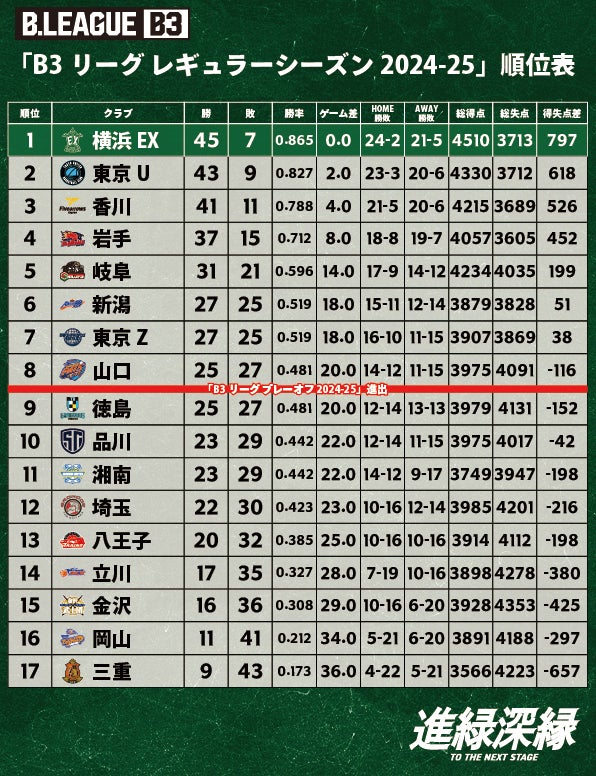 B3リーグ レギュラーシーズン 2024-25