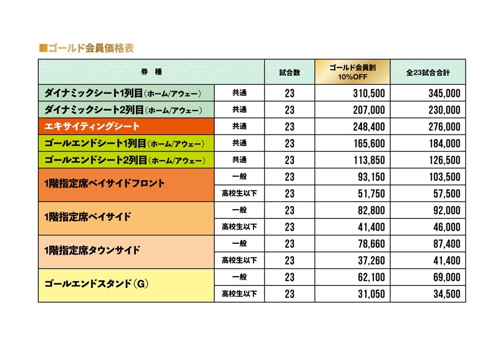 エクセレンスクラブ前売価格の10~20%OFFでご観戦いただける年間指定席となります!