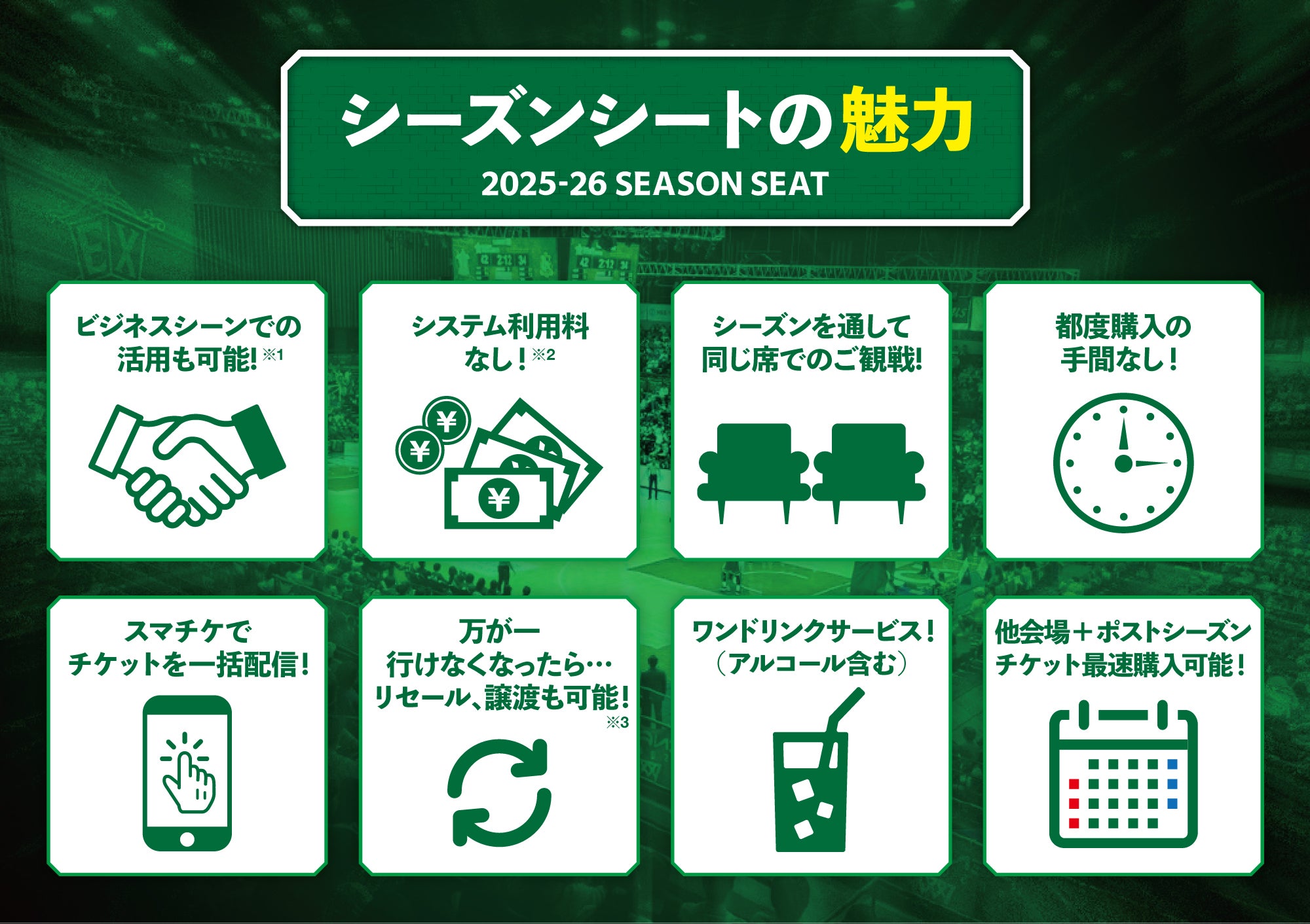※3 「Bリーグ公式リセールサービス」については法人販売を除く一般購入のお客様のみとなります。